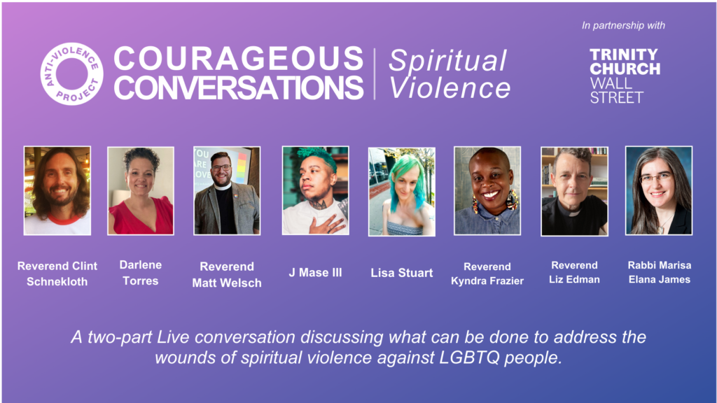 Live Broadcast: September 23 & 30 6pm ET / 3pm PT Spiritual violence against queer people is so pervasive it is almost hard to see. These sessions will explore: What … Continue reading Courageous Conversations: Spiritual Violence