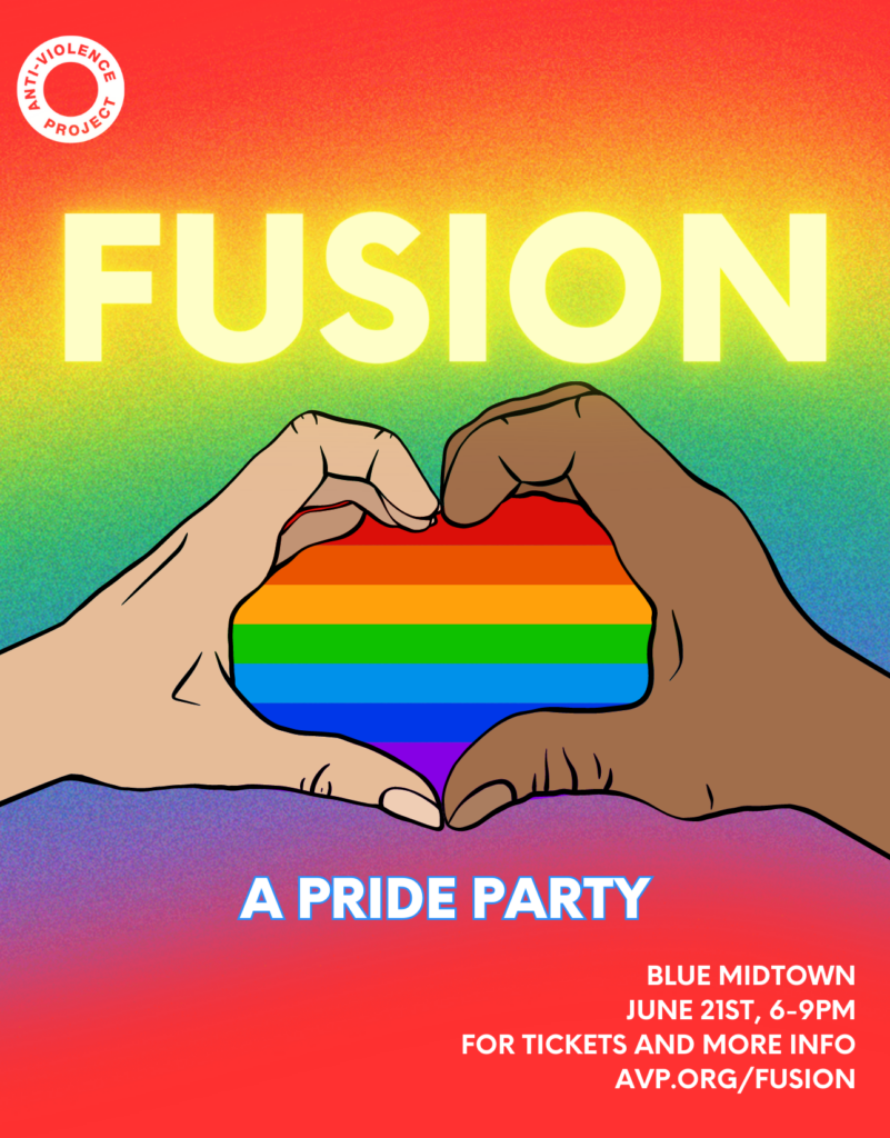 Join us for FUSION! AVP’s Pride Party is back at Blue Midtown (220 West 44th Street). Come by for drinks, DJ and drag all while supporting the work of AVP. Purchase your tickets below!